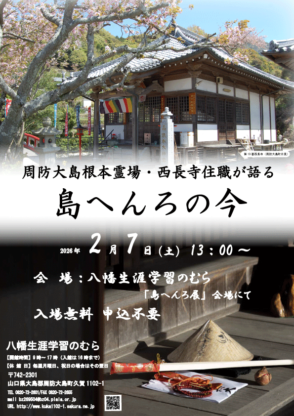 | 場所 | 山口県大島郡周防大島町久賀1102−1 八幡生涯学習のむら「島へんろ展」会場にて |